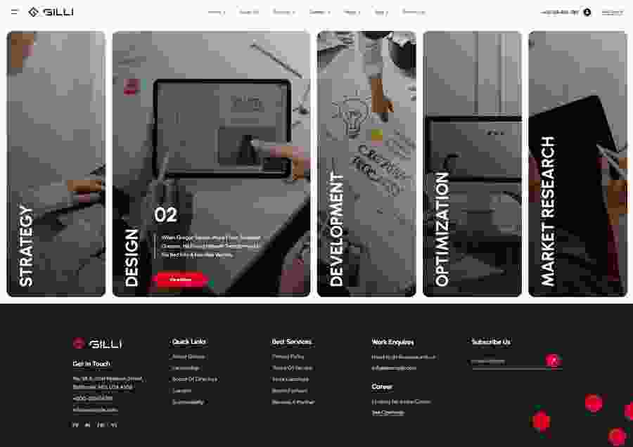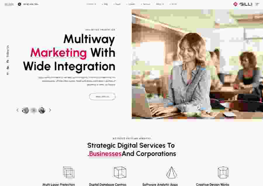 Gilli is an excellent solution for startups, coworking space, cloud hosting, application, event, business, personal portfolio, services, enterprises, social media marketing, Digital agency, Tax Consultant, Law Firms, Consulting Business websites, Design Studios.